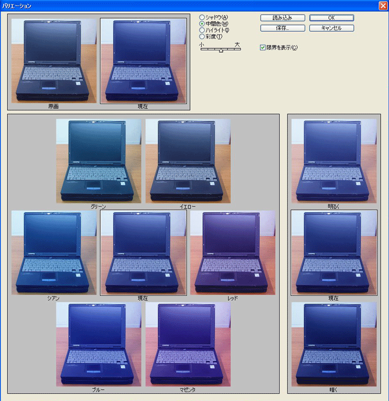 2.画像補整 photoshopは一つの効果を適用するのにも様々な方法があります。 画像の暗部を明るくする修正する効果を例にとっていくつかの方法を説明してゆきたいと思います。 シャドウ・ハイライトの補正 明るい部分の階調はそのままで暗い部分だけを明るくしたい。 ![]() シャドウ・ハイライトを使った修正 ![]() シャドウ・ハイライト修正の一番簡単な方法です。 [イメージ-色調補正-シャドウ・ハイライト]のシャドウ・ハイライトプロパティでスライダーを調整します。 レベル補正を使った修正 ![]() [イメージ-色調補正-レベル補正]のレベル補正プロパティでスライダーbを調整します。 スライダーの説明 a.画像で一番暗い部分を調整します。右側にスライドすると暗くなっていきます。 b.画像の中間調を調整します。 c.画像で一番明るい部分を調整します。左側にスライドすると明るくなっていきます。 d.画像で一番暗い部分を明るく調整します。 e.画像で一番明るい部分を暗く調整します。 レベル補正の基礎知識 ![]() レベル補正のプロパティを見ると、黒いグラフのようなものが明度の分布状況です。 真っ白を255、真っ黒を0として255階調で表しています。 上の画像はくすんだように見えます。 明るい部分が多く、真っ黒も無く真っ白も無いので明度の分布が両端にはありません。 このようなときは、下の画像のように色情報があるところまでスライダーをうごかします。 入力レベルを比較してもらうとわかると思いますが黒が0から48に変わっています。 これは48の部分を真っ黒(0)に指定したということです。 白側は228の部分を真っ白(255)に指定したということです。 これで明度バランスのはっきりした画像に変わりました。 トーンカーブを使った修正 ![]() [イメージ-色調補正-トーンカーブ]でプロパティを表示します。 ラインをドラッグするとカーブを変えることができます。 細かく調整したい場合はライン上をクリックしてポイントを作成してからカーブを変更します。 今回はシャドウ部分だけを補正したかったので黒線のようになっています。 初期画面は対角線(黄色)になっています。 メリハリのある画像にするにはS字(赤色)にカーブを作ります。 トーンカーブは色調補正ツールですがチャンネルがRGBの時は明度の補正にも使えますが彩度も変わります。 -トーンカーブの裏技- 画像の一発補正 ![]() [イメージ-色調補正-トーンカーブ]でプロパティを表示しますが[Ctrl + M]でも表示できます。 1.プロパティの右下のスポイトをクリックします。 2.画像の中の一番白い部分をクリックします。 ※これはスポイトでクリックした部分を基準(真っ白)にして画像を補正するツールです。 真ん中のスポイトはグレーを基準に、左側は真っ黒を基準に補正します。 -プロパティ画面の裏技- プロパティ画面をいろいろと調整して元に戻したいときがありますが[キャンセル]を押すとプロパティ画面自体が消えてもう一度呼び出さなくてはならなくなります。 そのようなときはキーボードの[Alt]を押してみてください。 ボタンが[キャンセル]から[初期化]に変わります。 これはトーンカーブだけではなくほとんどのプロパティ画面で使用できます。 色調補正 ![]() 色調修正の一番簡単な方法です。 [イメージ-色調補正-自動カラー補正](画像の中に白が無いときはうまくいかないときがあります。) カラーバランスを使った補正 ![]() [イメージ-色調補正-カラーバランス]でスライダーを調節します。 この画像は青みがかっているのでレッド+25,ブルー-42に調整しました。 色相・彩度を使った補正 ![]() [イメージ-色調補正-色相・彩度]でスライダーを調節します。 このプロパティは色相・彩度・明度を各色相ごとに調整できます。 カラーバランスで補正しきれないときに使用すると良いでしょう バリエーションを使った補正 ![]() [イメージ-色調補正-バリエーション]でバリエーションプロパティを開きます。 視覚的に変化が見えるので近い色を選択します。 モノクロ画像の作成 ![]() モノクロ画像の作成にはもっと専門的な作成方法がありますがここでは簡単な方法を記載します。 画像が背景レイヤーだけの場合[イメージ-モード-グレースケール]でモノクロ画像に変換されます。 複数レイヤーで1レイヤーだけをモノクロにしたい場合は[イメージ-色調補正-彩度を下げる] 後はレベル補正で濃淡を調整します。 |